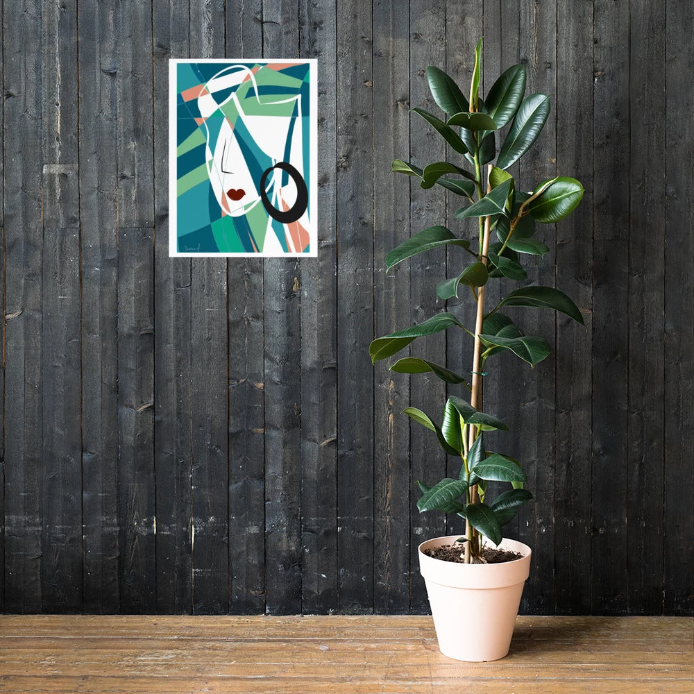 Intersections: In a cubist style portrait, intersecting linear and quadratic inspired forms create shaded regions in a coastal palette inspired by the vibrant colors of Cape Town, South Africa