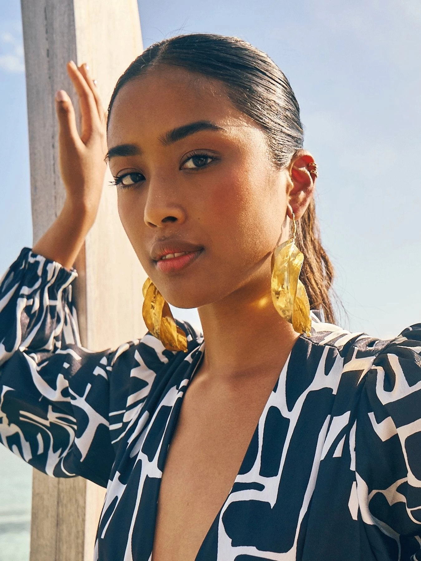 These luxury earrings are handcrafted by local Fulani artisan communities in Senegal and Mali, one of the largest nomadic herds in West Africa. The Fulani tribe is well known for their traditional jewelry, which culturally represent a symbol of wealth they could carry at all times.