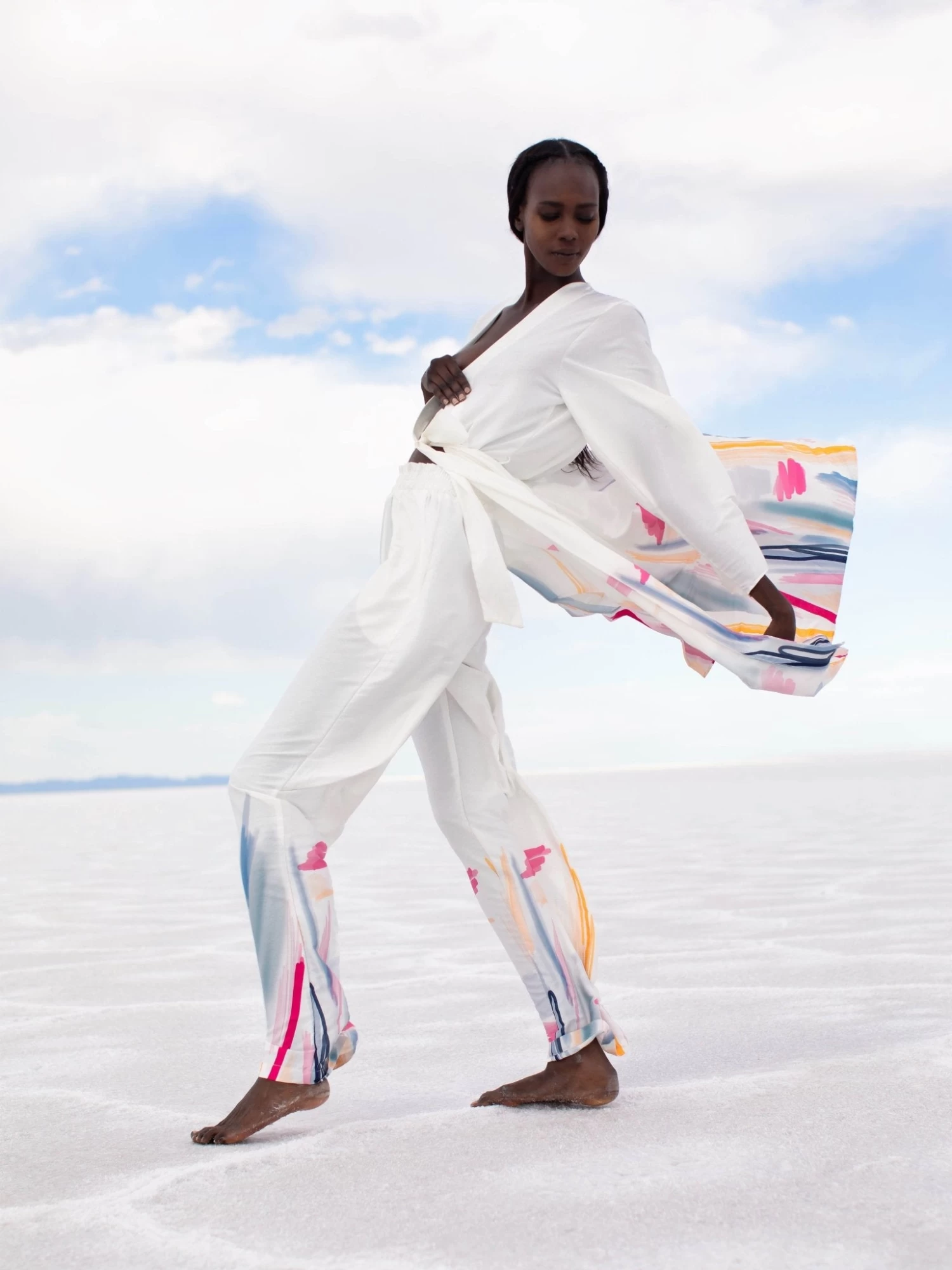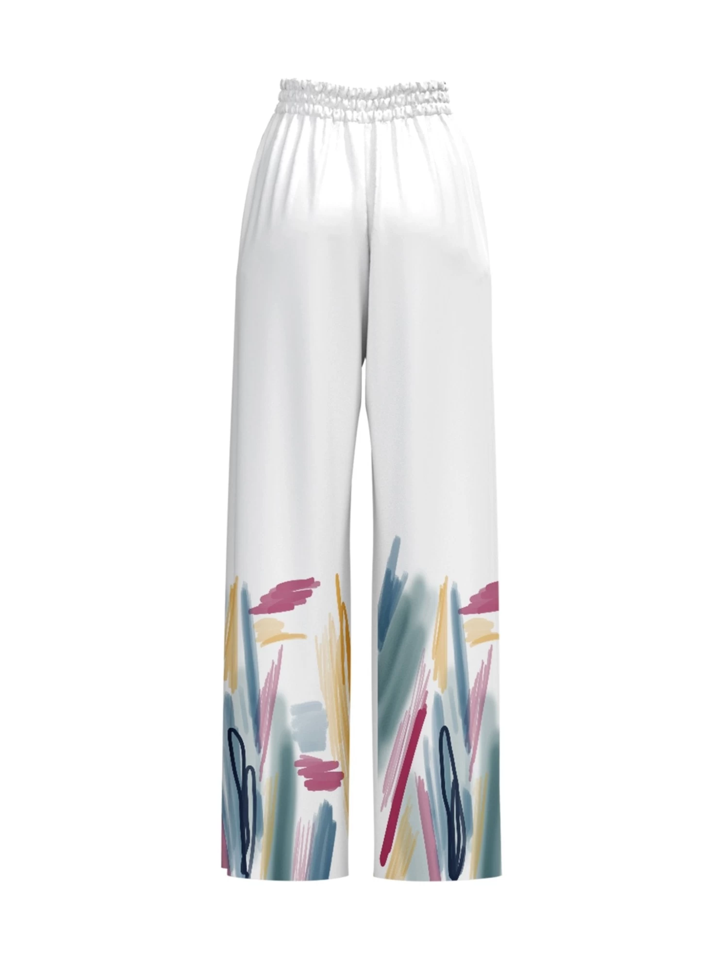 The high-waisted palazzo leer pants are flattering for all body sizes and feature an elasticized waistband for utmost comfort.