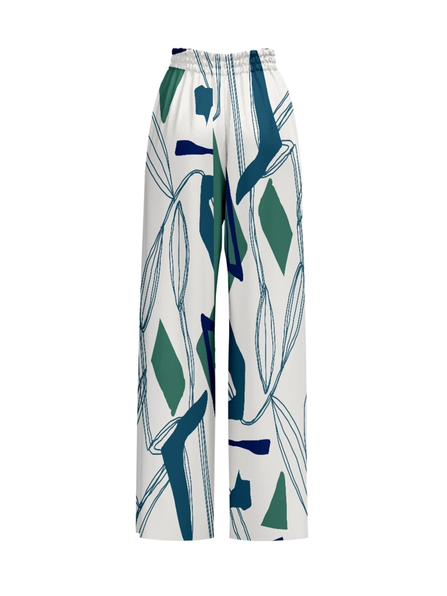 The high-waisted palazzo leer pants are flattering for all body sizes and feature an elasticized waistband for utmost comfort.