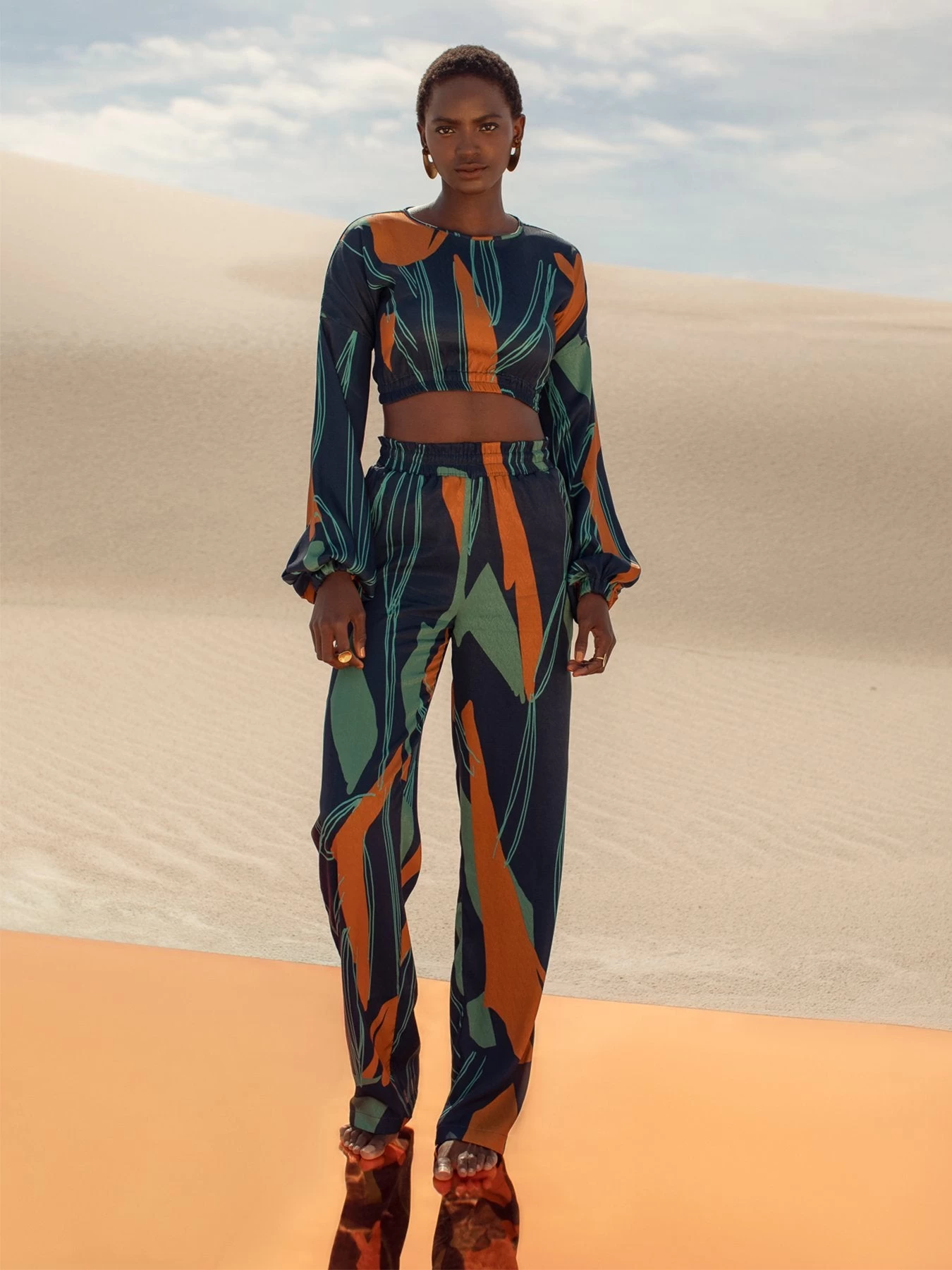 The high-waisted palazzo leer pants are flattering for all body sizes and feature an elasticized waistband for utmost comfort.