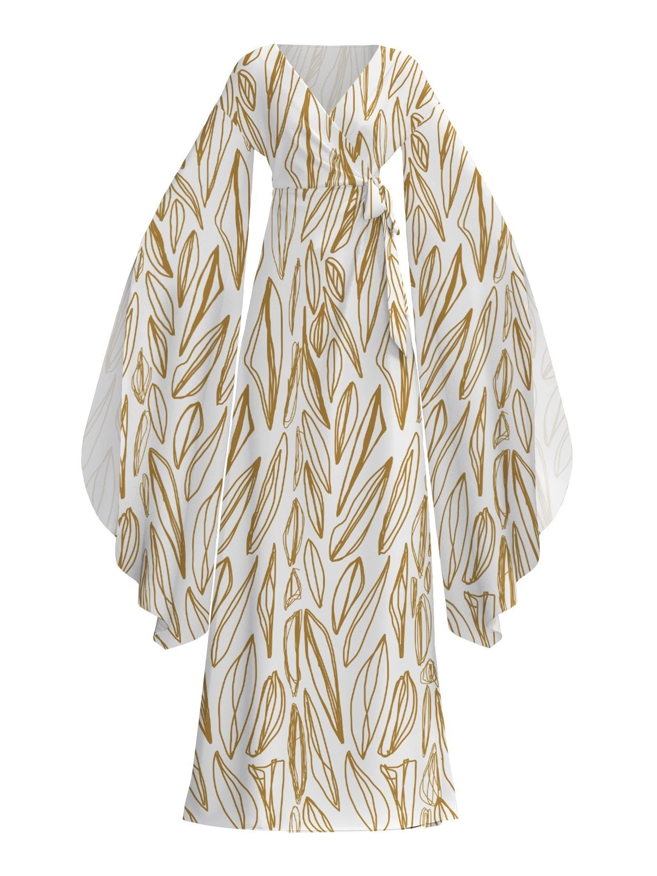 The dramatic sleeves are always going to be shorter than the dress length and the dress length is adjusted based on your height. As a result, the sleeves will not be dragging on the floor, regardless of your height.