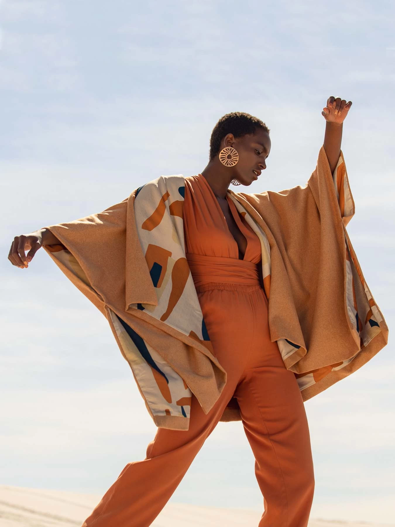 The reversible poncho is a versatile and comfortable layer for cooler days.
