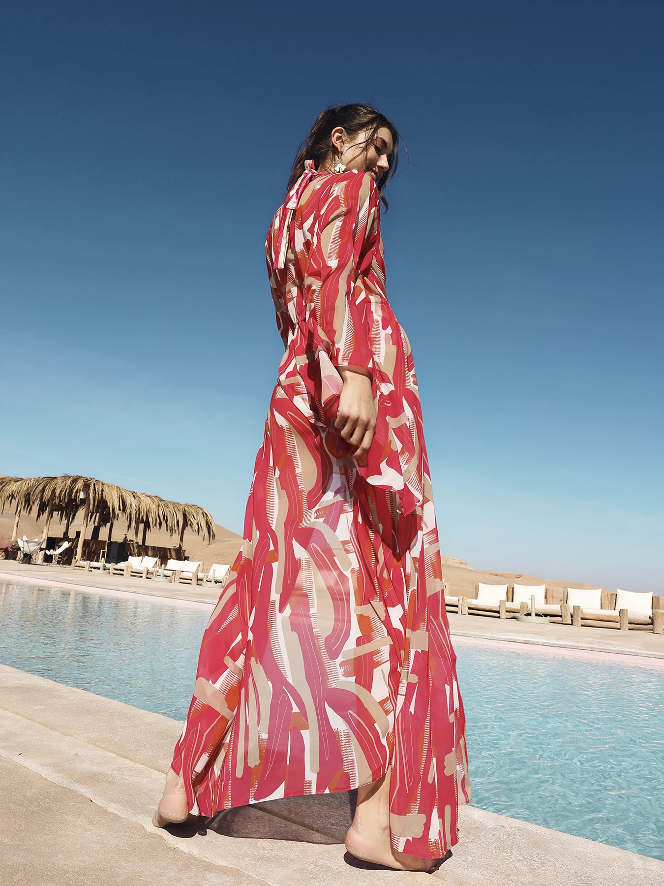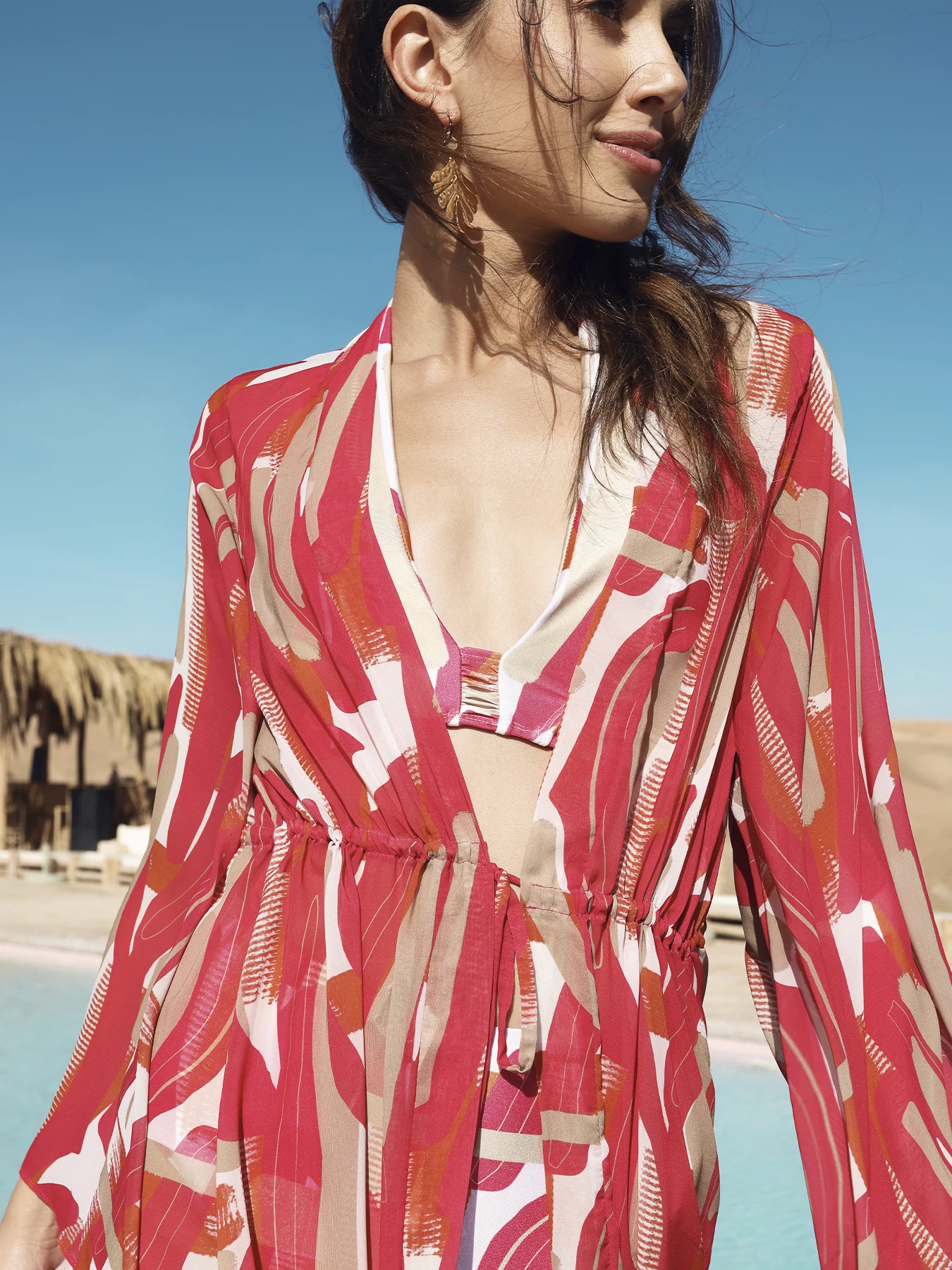 Our Sirene Kimono’s free-flowing chiffon fabric will make you want to book that destination vacation! Pair back with one of our swimsuits for that cover-up look, or wear it as a top with our Leer pants. The styling possibilities are endless!