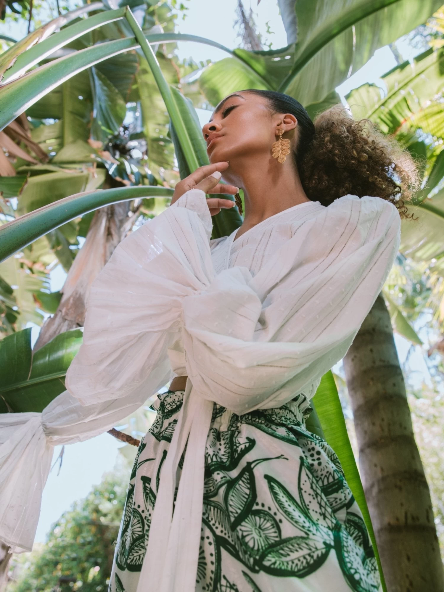 The Aja top is an elegant piece with statement sleeves to stand out for any occasion.