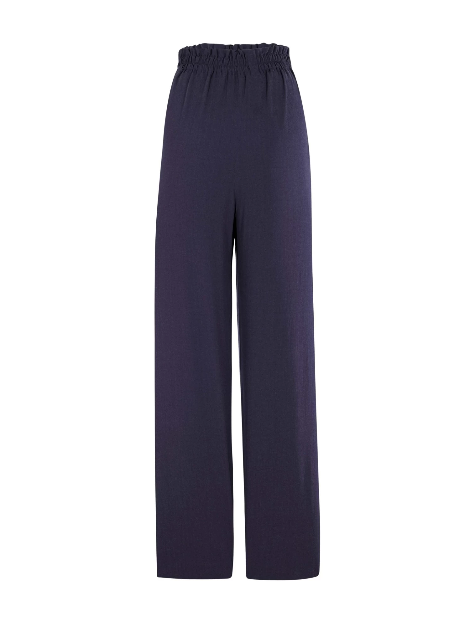 The high-waisted palazzo leer pants are flattering for all body sizes and feature an elasticized waistband for utmost comfort.