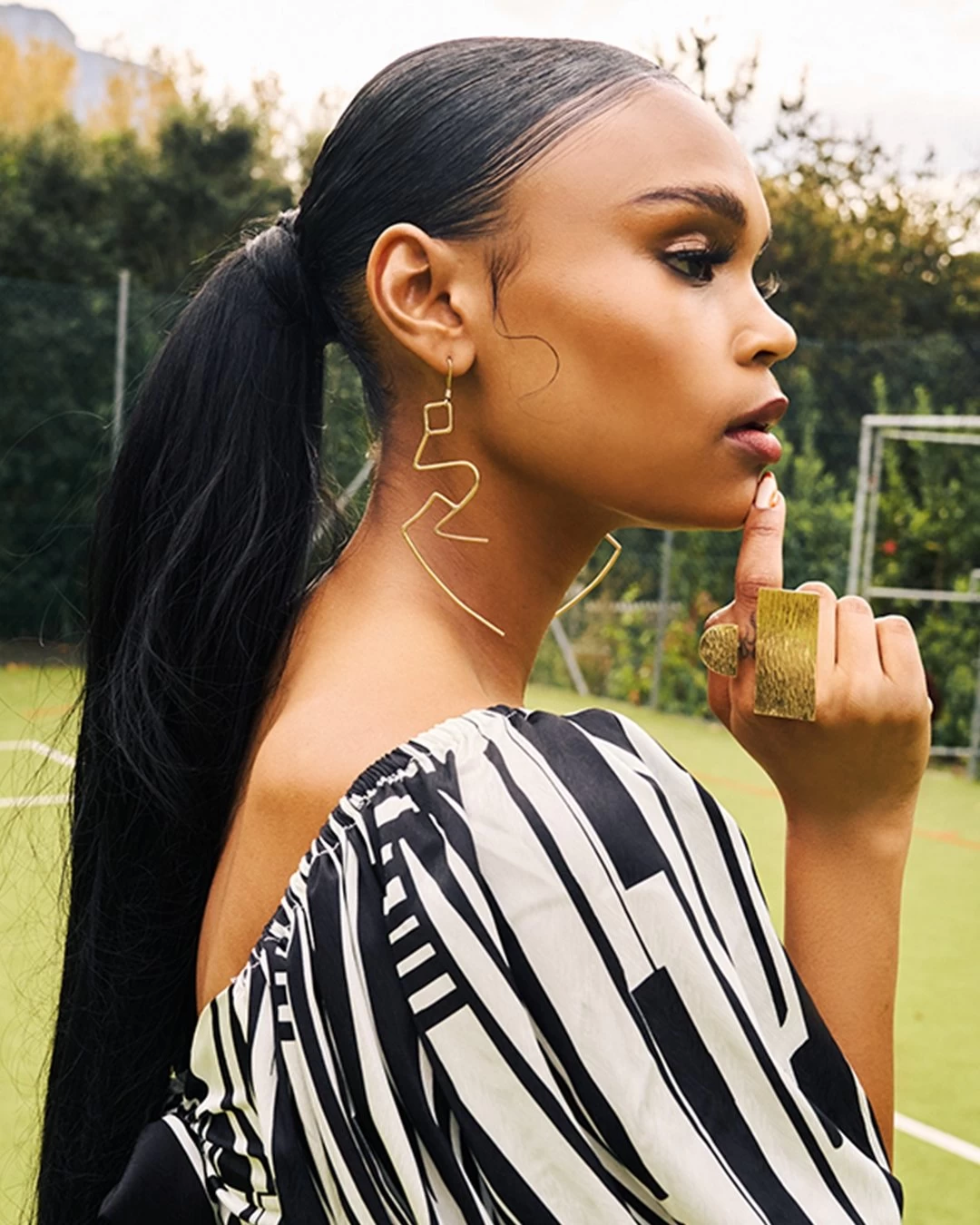 Statement earrings handcrafted in upcycled brass by artisans in Senegal.